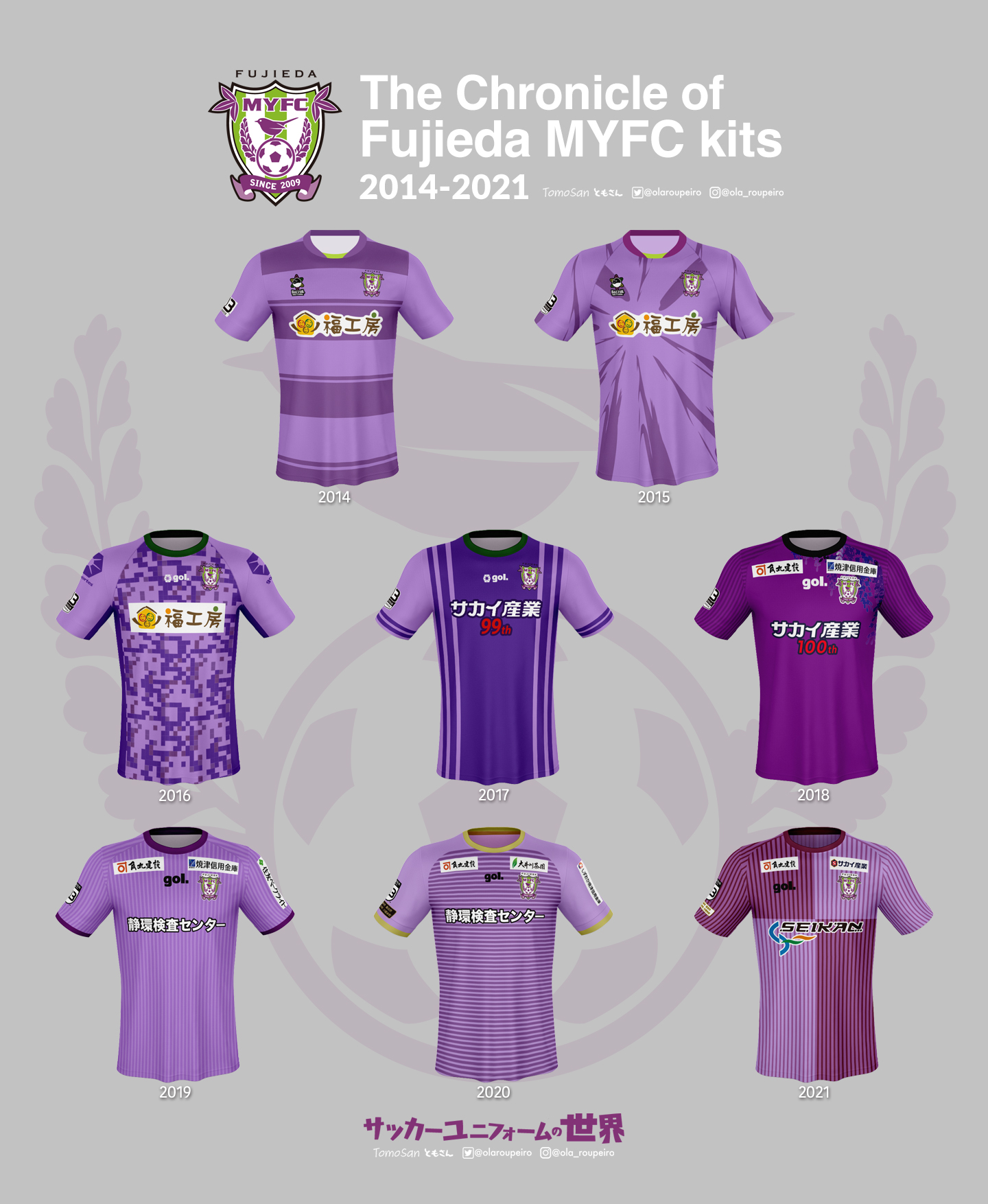 ともさん Tomosan サッカーユニフォームの世界 藤枝myfcのjリーグ歴代ユニフォーム サッカーの街 藤枝市 藤をモチーフの藤色のユニフォームが伝統 14 15 Razzoli 16 Gol あなたの思い出のユニフォームはどれですか 藤枝myfc Jユニ図鑑